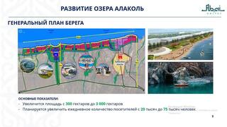 «Осенью прошлого года начались работы по внесению изменений в генеральный план, которые завершатся в сентябре текущего года. В результате площадь территории увеличится с 300 до 3 000 гектаров. Планируется увеличить ежедневный поток туристов с 20 тысяч до 75 тысяч человек. В целях обеспечения безопасности туристов в селе Кабанбай ведется строительство пожарного депо», – отметил глава региона.