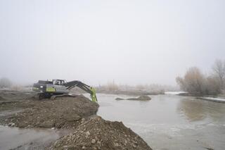 В частности, близ населенных пунктов Тастобе и Каражиде, где проживают порядка 2 тысячи человек, производятся масштабные работы по механической очистке и спрямлению русла, углублению дна и берегоукреплению. Здесь возводится насыпная дамба протяженностью 11 км. Этот долгосрочный проект начат в 2025 году.