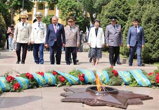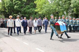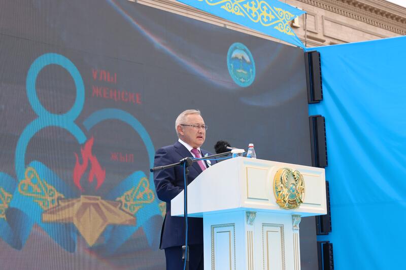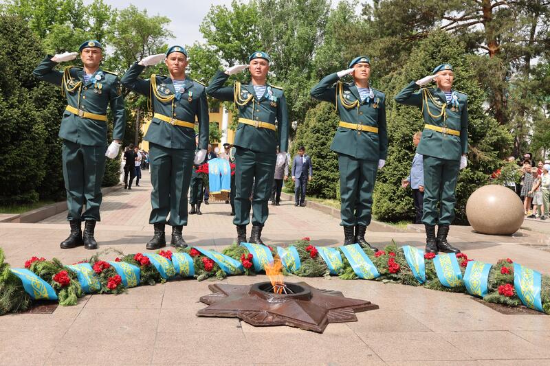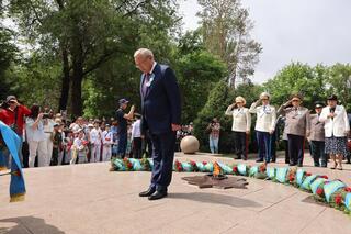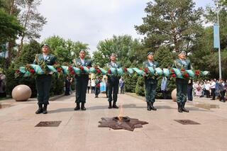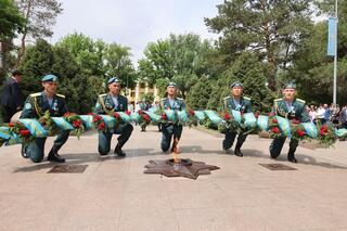 - Уважаемые ветераны, труженики тыла и жители области, поздравляю вас с 80-летием Победы в Великой Отечественной войне! Эта победа была достигнута благодаря самоотверженному мужеству наших отцов, самоотверженному труду наших матерей в тылу. Сегодня наша главная задача – помнить и чтить подвиг отцов, дедов и прадедов, передавая славу о нем из поколения в поколение. Как подчеркивает Президент нашей страны: «Для нас память о войне – это, прежде всего, память о героях, их самоотверженности, мужестве, верности долгу и присяге». Патриотизм и жизненный путь наших ветеранов – яркий пример для подражания для нынешней молодежи, а их подвиг – урок всему человечеству, - сказал Б. Исабаев, сообщив, что военнослужащие и ветераны области участвовали в военном параде с участием Главы государства в Астане, а сегодня «Крылатая пехота» из 37-й десантно-штурмовой бригады Десантно-штурмовых войск имени Героя Советского Союза генерал-майора И. Панфилова представляет страну на параде в Москве.
