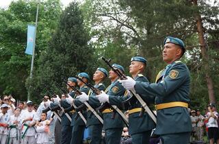 В завершение по традиции ветеранов угощали знаменитой солдатской кашей, которую готовили тут же на полевой кухне. Также на талдыкорганском ипподроме были организованы спортивные состязания по национальным видам конного спорта, а в вечернее время на площади состоится еще один праздничный концерт.