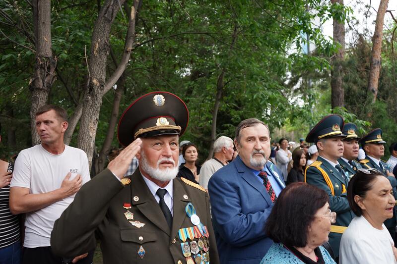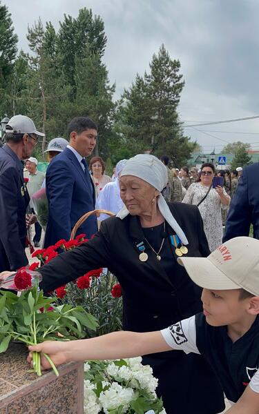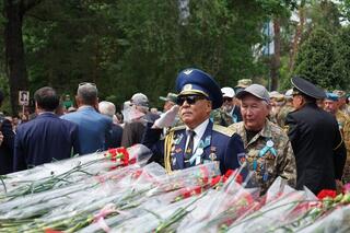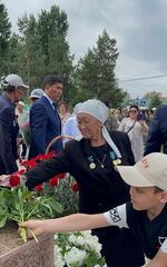 - Я живу в Талдыкоргане, на сегодняшний праздник я сопровождаю своих внуков, чтобы они знали историю, уважали наших предков. Мой отец и два его брата ушли на фронт и не вернулись. Сегодня я пришла почтить память близких мне людей. Мы никогда не забудем фронтовиков, которые подарили нам мирную жизнь, - сказал она.
