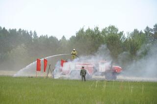 В Восточно-Казахстанской области по легенде пожар охватил территорию Риддерского лесного хозяйства и создал угрозу перехода на город Риддер. Многочасовая схватка с огнем, усилия спасателей, лесников, военных и местных исполнительных органов, авиации позволили полностью остановить условный огонь без перехода на жилой массив.