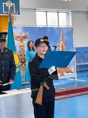 Торжественное мероприятие началось с исполнения Государственного гимна Республики Казахстан. Учащиеся кадетского класса продемонстрировали элементы строевой подготовки и показательные выступления. Завершилась церемония принятием присяги и вручением удостоверений.