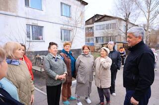 Глава региона пообщался с жителями микрорайона. Люди отмечали, что эту зиму прожили по-новому, радуясь цивилизации.
