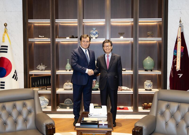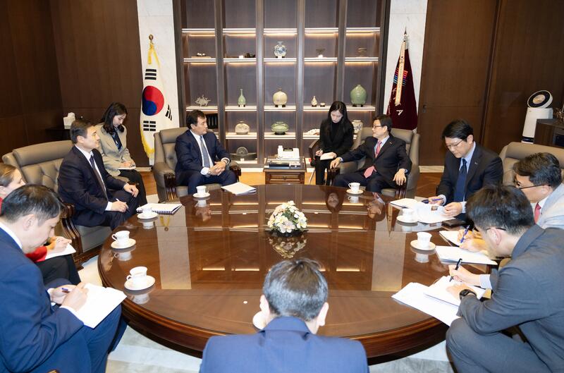 Переговоры с Министром торговли Республики Корея Ё Хан Ку, а также с Первым вице-министром земли, инфраструктуры и транспорта Республики Корея Ким И Таком были сосредоточены на вопросах торгово-инвестиционного сотрудничества, развития транспортно-логистических связей и продвижения проекта Alatau City.