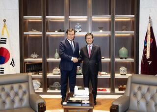 Помимо этого, состоялась двусторонняя встреча с Заместителем министра иностранных дел Республики Корея Чон Ый Хие, а также визит вежливости к Министру иностранных дел Республики Корея Чо Хёну. В ходе встреч стороны отметили традиционно дружественный и доверительный характер казахско-корейских отношений, а также подтвердили взаимную заинтересованность в дальнейшем укреплении двустороннего сотрудничества.