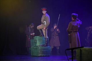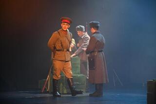 Также в ходе спектакля был показан отрывок из беседы Бауыржана Момышулы с учителем, сестрой и узбекским солдатом.