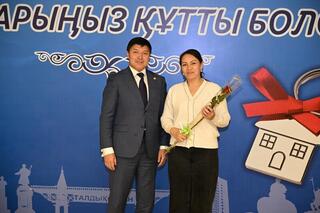 В ходе торжественной церемонии аким города Ернат Бәзіл вручил ключи от новых квартир и разделил радость с новосёлами. Жильё предоставлено в современных жилых домах, расположенных по проспекту К. Жалаири.