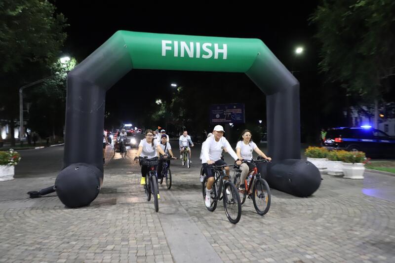 В Талдыкоргане прошел ночной велопробег с участием акима города