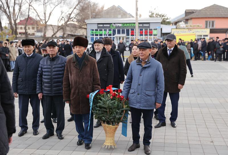 Участие в церемонии приняли аким Жамбылской области Ербол Карашукеев, председатели областного и городского маслихатов, общественных и ветеранских советов, представители интеллигенции, ветераны и активная молодежь.