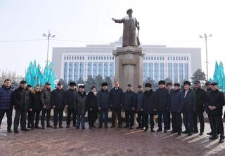 В честь 180-летия со дня рождения выдающегося акына Жамбыла Жабаева в Таразе состоялась церемония возложения цветов к его памятнику.