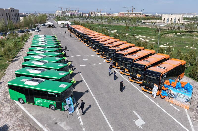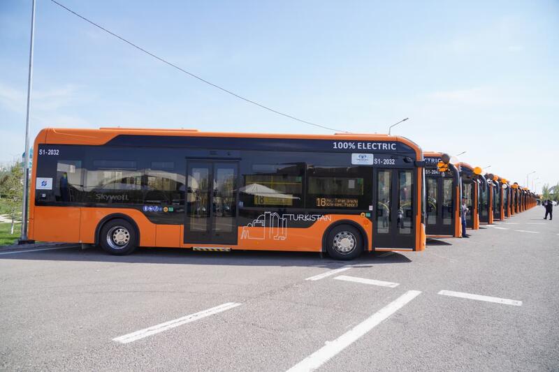 В ТУРКЕСТАНЕ ПРЕЗЕНТОВАЛИ 35 СОВРЕМЕННЫХ ЭЛЕКТРОАВТОБУСОВ