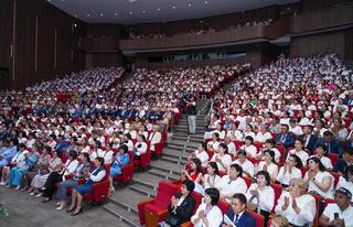 - Повышение качества медицины, поддержка этой сферы – одно из наших приоритетных направлений. По поручению Главы государства в прошлом году в области начато строительство 55 объектов здравоохранения. В рамках национального пилотного проекта "Модернизация здравоохранения на селе" введено в эксплуатацию 49 объектов первичной медико-санитарной помощи. В 2023 году в область была обеспечена 75 машинами скорой помощи. Служба санавиации пополнилась 15 каретами скорой помощи. В 2024 году медицинским организациям было предоставлено 574 единицы современного оборудования на 8,8 миллиарда тенге. Надеюсь, что предложения и идеи, озвученные на сегодняшнем форуме, воплотятся и придадут импульс развитию медицинской сферы. Развитие здравоохранения в Туркестанском регионе с высокой демографией имеет большое значение. Мы открыты для предложений и поддерживаем предложения по улучшению здоровья населения. Еще раз поздравляя с Международным днем медицинской сестры, желаю всем крепкого здоровья и долгих лет жизни! - сказал аким Туркестанской области Нуралхан Кушеров.