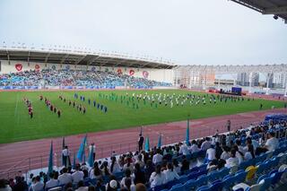 В городе Туркестане стартовала спартакиада «Кубок труда» среди студентов организаций технического и профессионального, послесреднего образования. В этом году в конкурсе принимают участие около двух тысяч студентов из колледжей 20-ти регионов Казахстана. На открытии спартакиады на стадионе “Туркестан арена" с приветственным словом выступили министр просвещения РК Гани Бейсембаев и аким Туркестанской области Нуралхан Кушеров. Они пожелали спортсменам удачи.