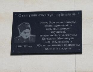 Данная доска установлена по инициативе областной прокуратуры в честь казахского батыра, Бауыржана Момышулы, исполнявшего должность прокурора Жуалынского района и прокуроров, участвовавших в Великой Отечественной войне.