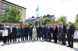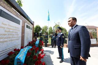 Празднование 80-летия Великой Победы и 115-летия Героя Советского Союза Бауыржана Момышулы продолжилось открытием памятной доски на площадке «Заңдылық» (Законность) Жамбылской областной прокуратуры.