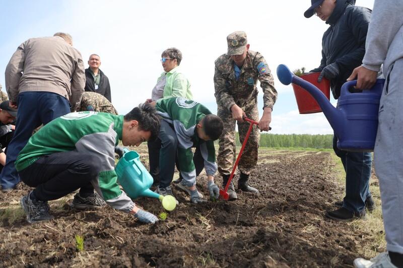 В рамках экологической акции «Таза Қазақстан» глава региона вместе с общественностью района приняли участие в высадке саженцев. Всего здесь планируется высадить 23 тысяч деревьев.