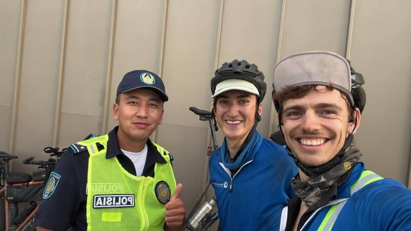 Велопутешественники из Германии поблагодарили казахстанских полицейских