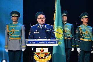 С напутственным словом к призывникам обратился заместитель министра обороны по воспитательной и идеологической работе генерал-майор Аскар Мустабеков.
