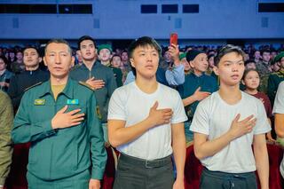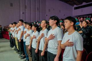 «21 солдат отправится на пограничную службу в Зайсан Восточно-Казахстанской области. Кандидаты отбирались в соответствии со специальными требованиями комитета безопасности. Основная цель сегодняшнего мероприятия — призвать выпускников школ не избегать армии и исполнить свой долг перед Родиной. В мероприятии принимают участие более 700 столичных школьников, воспитанники детско-юношеских военно-патриотических клубов «Жас сарбаз», курсанты и военнослужащие срочной службы», — отметил заместитель руководителя департамента по воспитательной, идеологической и кадровой работе Пограничной службы Берик Жиенбаев.