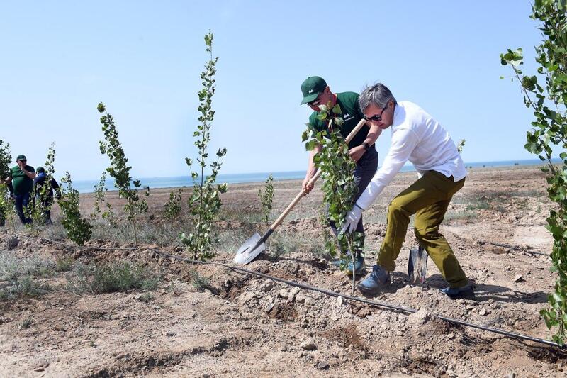 В экоакции приняли участие аким области Марат Султангазиев, Председатель правления НПП "Атамекен" Райымбек Баталов, представители компании Safс, сотрудники областных научно-аграрных институтов и волонтеры.